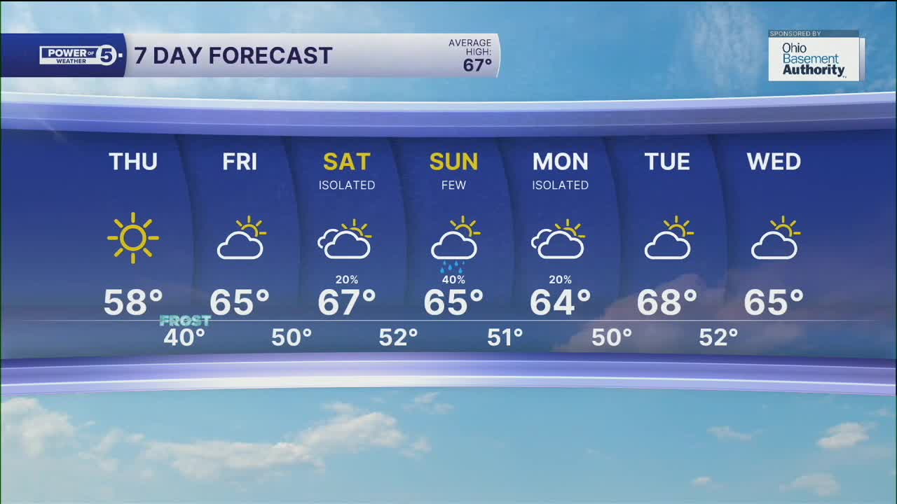 Afternoon temperatures will slowly rise by this weekend, and it will be very typical for October with highs in the mid and upper 60s. There will be plenty of dry time this weekend, but the latest data suggests a few showers cannot be ruled out on both Saturday and Sunday, particularly late Saturday and in our eastern communities on Sunday. It is still several days out, so we will be sure to keep you posted on the likelihood of these showers and potential impacts to your plans.