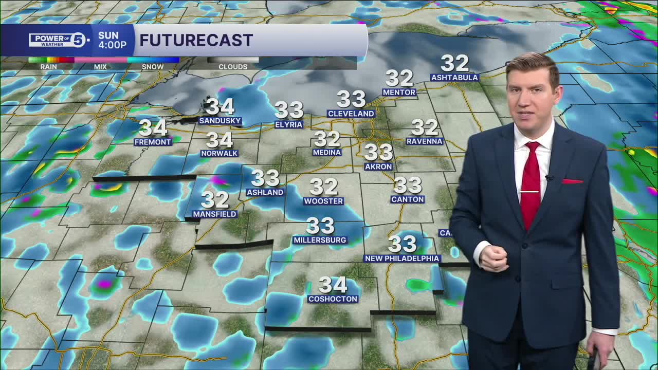 CLEVELAND — Welcome back to winter! It will be a textbook winter day for Saturday, with partly-to-mostly cloudy conditions and temperatures topping out in the upper 30s. While it will be dry across the region for most of the day, snow chances return during the evening and especially into Sunday.