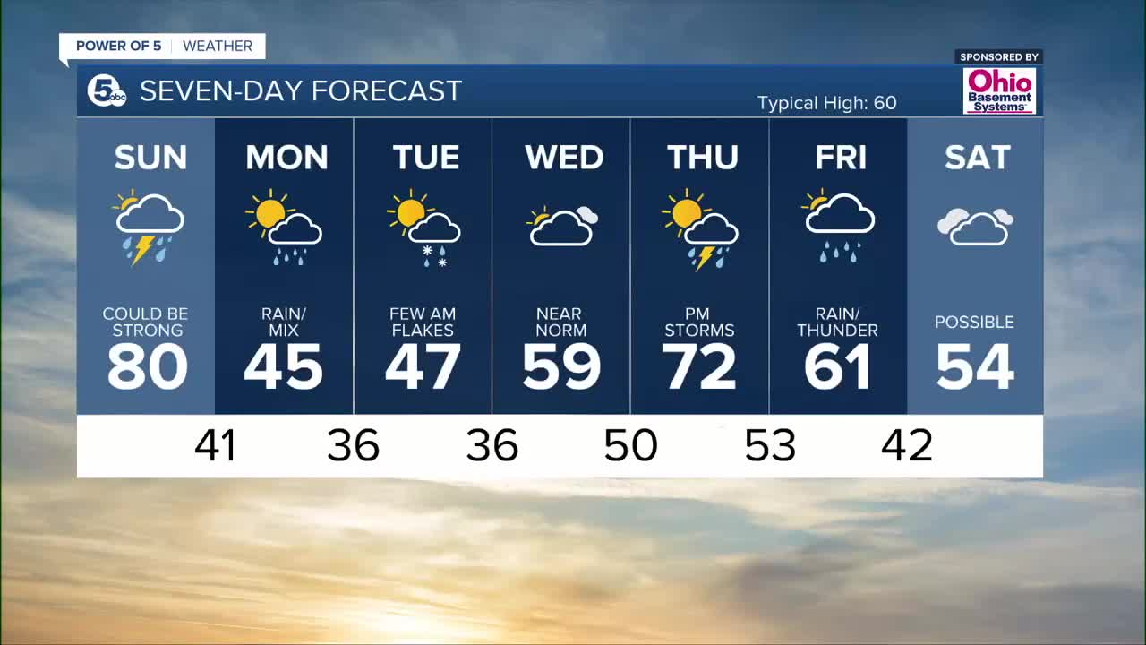 - Strong storms possible Sunday late afternoon