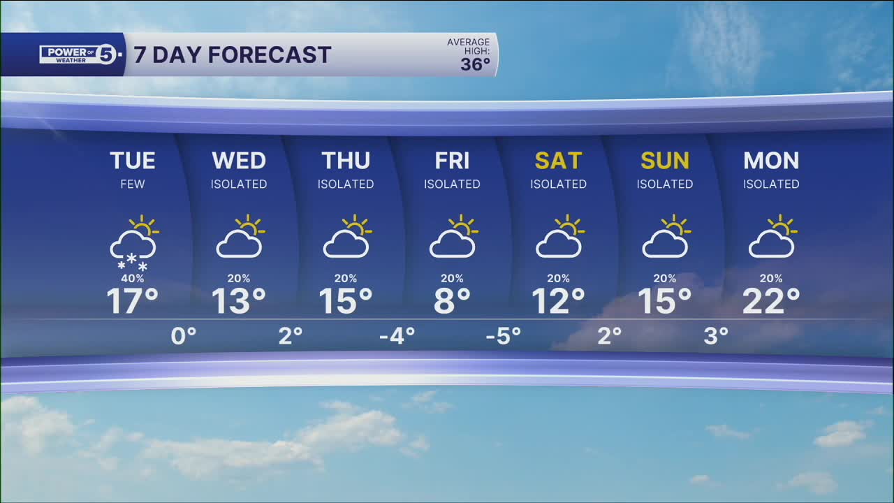 CLEVELAND — Extreme Cold Warnings expire this morning, replaced by Cold Weather Advisories for tonight. The nights will be near advisory criteria all week. Nighttime lows near 0º. Afternoons in the teens. That's the story all week.