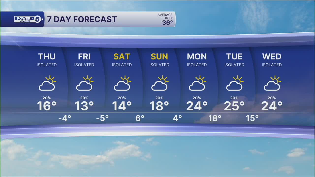 Sunday: Isolated snow showers possible, cold. | High: 17º