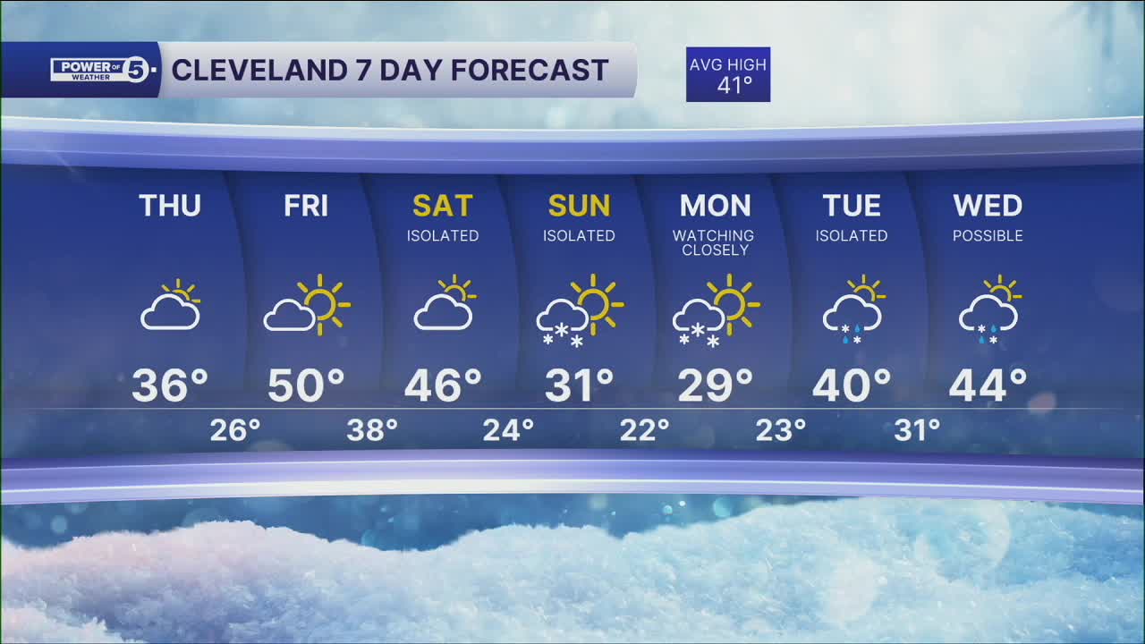 CLEVELAND — We stay dry the rest of the work week. Chilly Thursday with highs in the 30s, but we rebound again on Friday. Highs topping off in the low to even mid 50s, under mostly sunny skies, a great Friday is on tap.