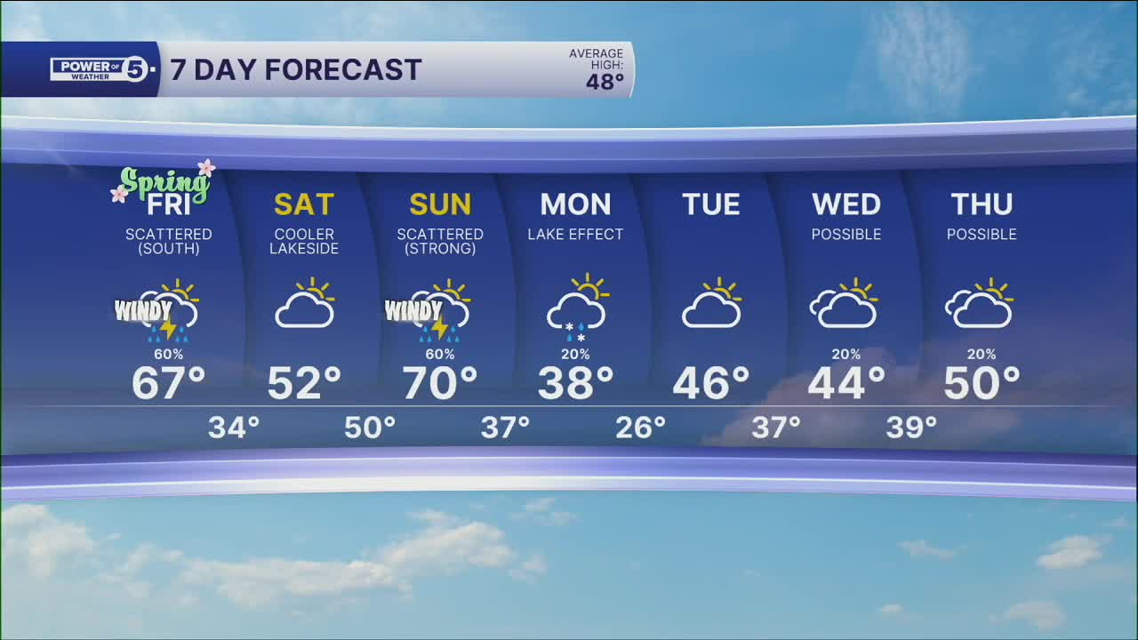 And Friday is going to feel like spring. Temperatures should be in the 60s for everyone, but there is another storm system on the way, including another warm front with a trailing cold front. This means we need to plan for more ups and downs. Friday will be windy and warmer, with most of us in the 60s. That's warm enough for scattered rain with embedded thunderstorms.