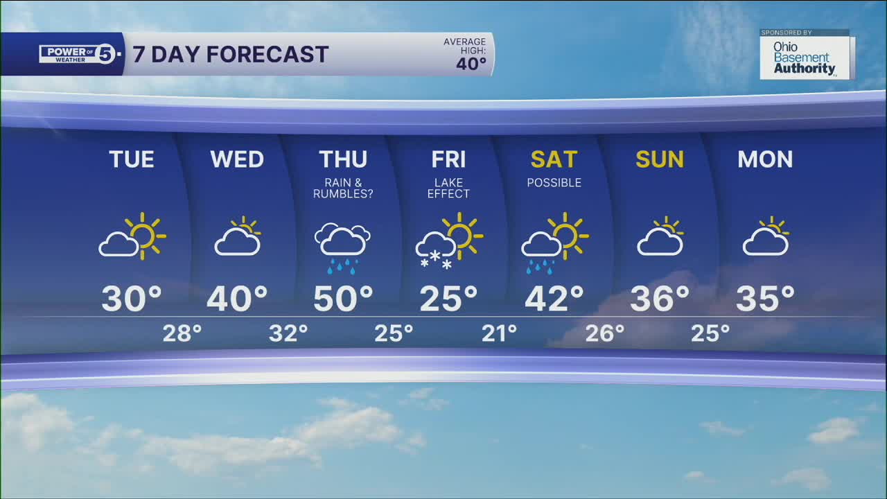 Friday: Lake effect snow showers. Colder. Breezy. | High: 25º