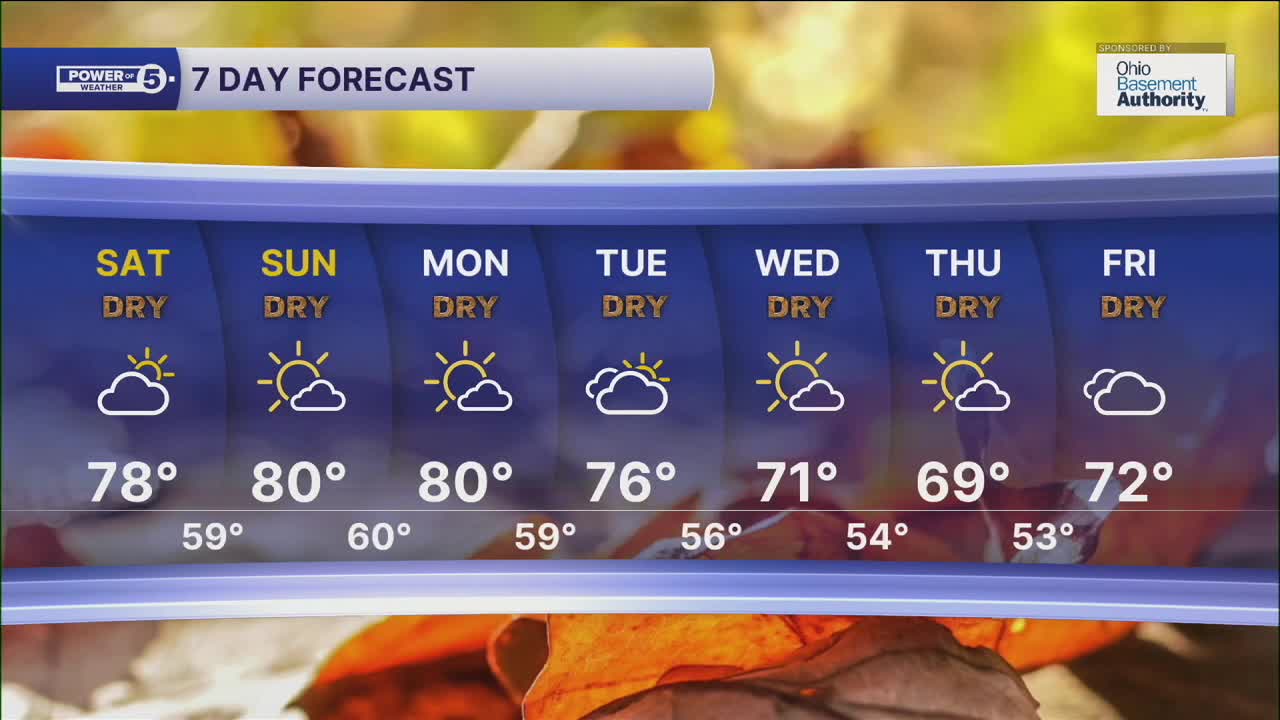 Not only is the dry weather returning, but we are heating up as well! Upper 70s to low 80s are possible on Saturday, and it could be a couple degrees warmer than that on Sunday and Monday. Cooler temperatures will try to move in by the middle and end of next week as Canadian high pressure builds into the region.