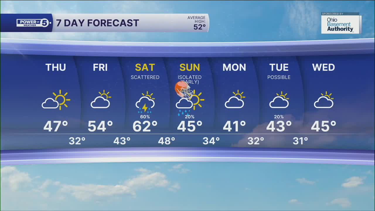 Sunday: Showers early but drying & cool after. | High: 45º
