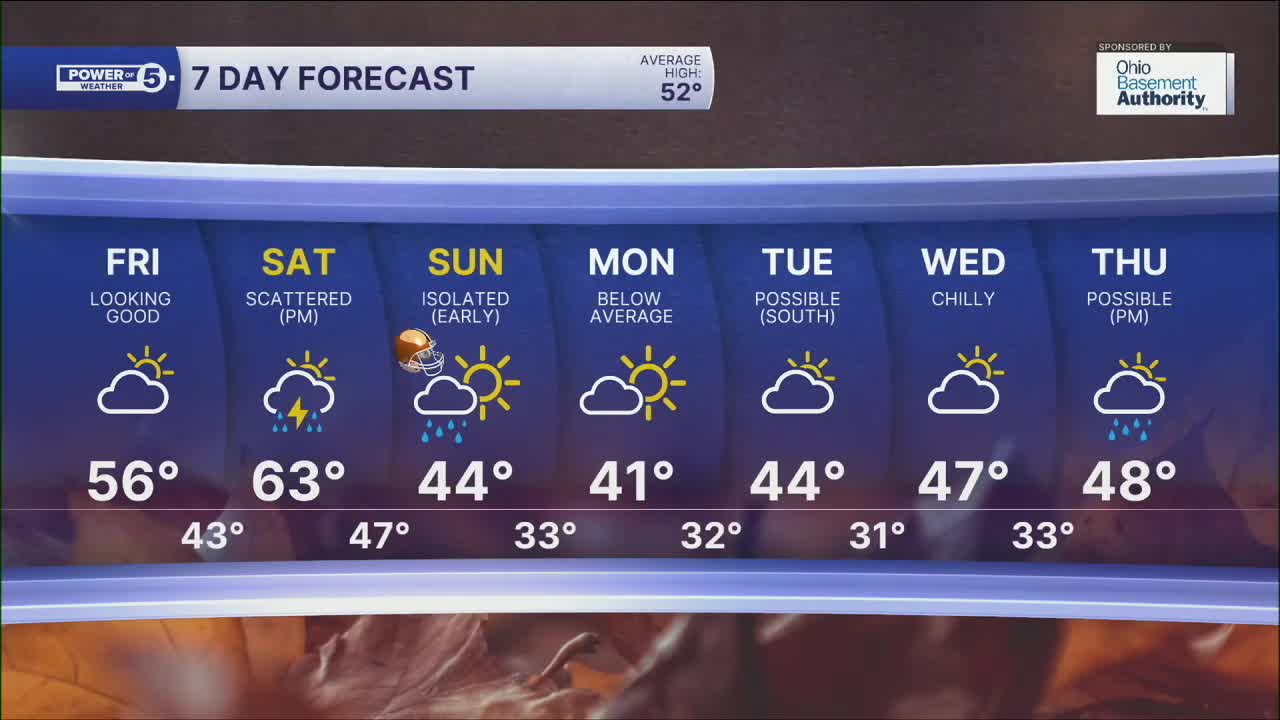 CLEVELAND — Here comes the rebound! A brief but impressive warm-up is in the forecast for the next few days, but there will also be a chance of a few showers and even some storms this weekend.