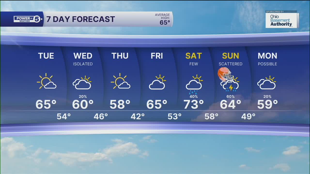 CLEVELAND — We're right on par! Average highs in the middle 60s this time of year... that's where we are. Or at least within a degree or so. Enjoy it. Chillier air returns after isolated Wednesday morning rain showers. Most of us are dry but I can't rule out some wet roads, may need to use those wipers.