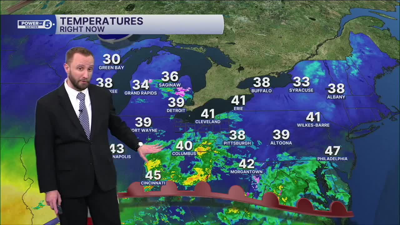 Temperatures will bump a few degrees for the end of the week, with highs in the lower 50s by Friday. Rain chances begin to return with the warmer air, with best chances to the south of Greater Cleveland on Friday and early Saturday.
