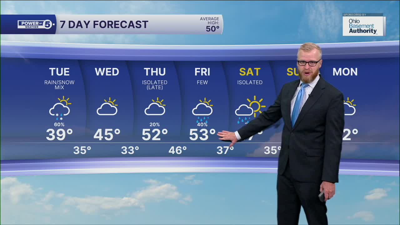 CLEVELAND — Temps are on the rise! It's critical to warm up above freezing today. A few thousand feet up we're above freezing, meaning the snow falling from the clouds is melting into raindrops. Most of today I'll be tracking light rain showers.