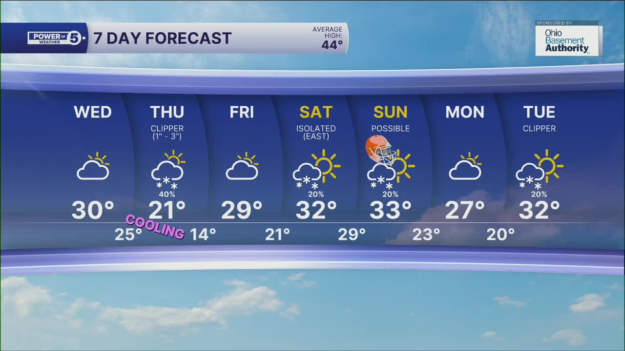 Sunday: Snow showers possible for the Browns game. | High: 33º
