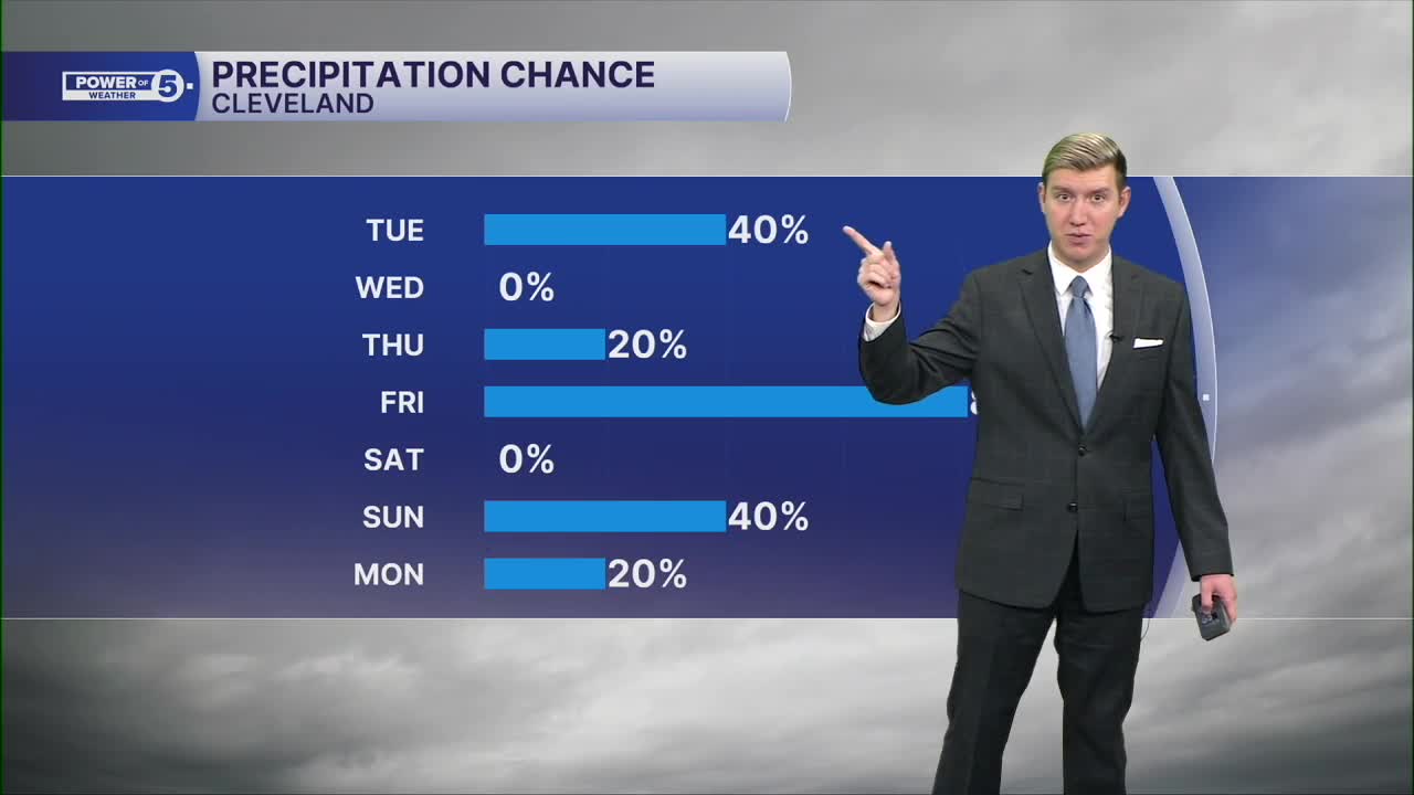 CLEVELAND — After some morning mist and drizzle, it has cleared out and even made way for a few peeks of sun. More peeks the farther west you are, and high temperatures there can briefly jump into the lower 50s. It will be on either side of 50º this afternoon in Cleveland. Enjoy it. It won't last.