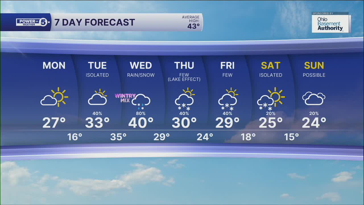CLEVELAND — Get ready for another work week cold blast. We'll see more sun Monday, but temps struggle to rebound. Stuck in the 20s all day.