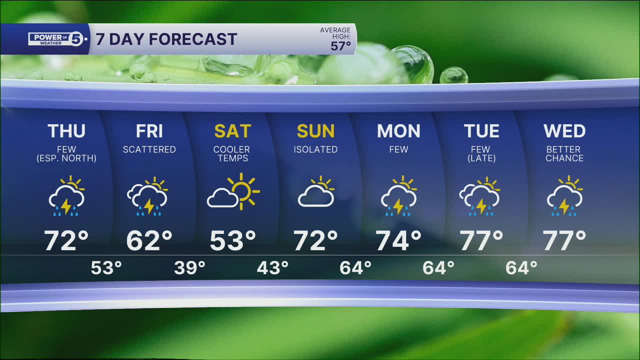 Temperatures will bump up even more on Thursday. That warmth comes with rain, though. A few t-showers roll in during the afternoon and continue into the evening. The best chance to see this rain is in the northern half of our viewing area.
