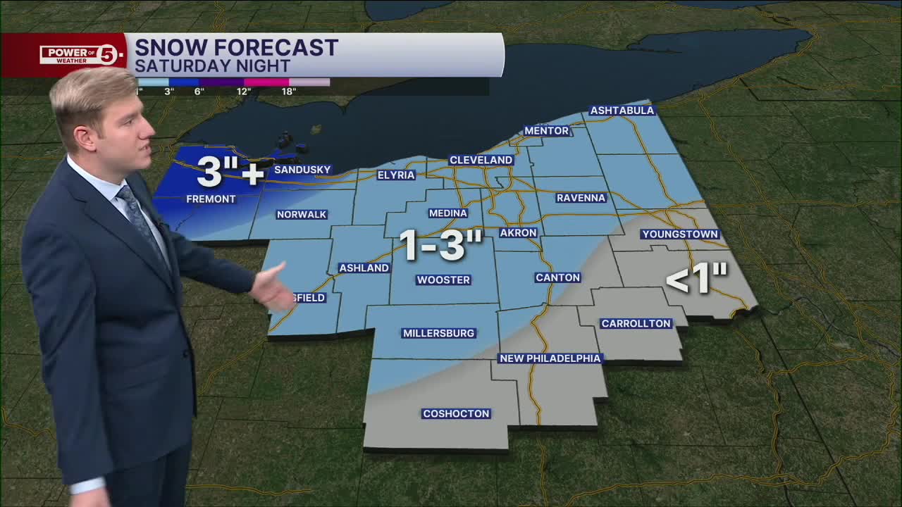 1 to 3 inches of snow is expected across most of Northeast Ohio before a changeover to a mix then rain by Sunday morning. That will cause some melting and compacting of totals, plus the lake effect accumulations from Thursday and Friday will make measuring the snow properly difficult.