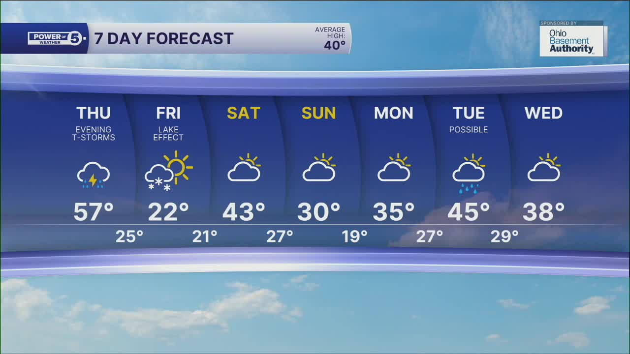 CLEVELAND — The temperature roller coaster continues up, up, up today, with highs reaching 60 degrees in parts of Northeast Ohio, mainly south of Canton. It will be tough to enjoy, as winds will gust over 40 mph into the afternoon and evening.