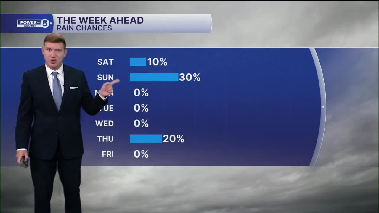 The best chance for those showers Sunday will be east of I-77, with an even better chance once you cross state lines into PA. In fact, a few showers are possible for the Browns game in Pittsburgh. This is all due to the strong nor'easter. It will also be a bit breezier with some 20 to 30 mile-per-hour gusts.