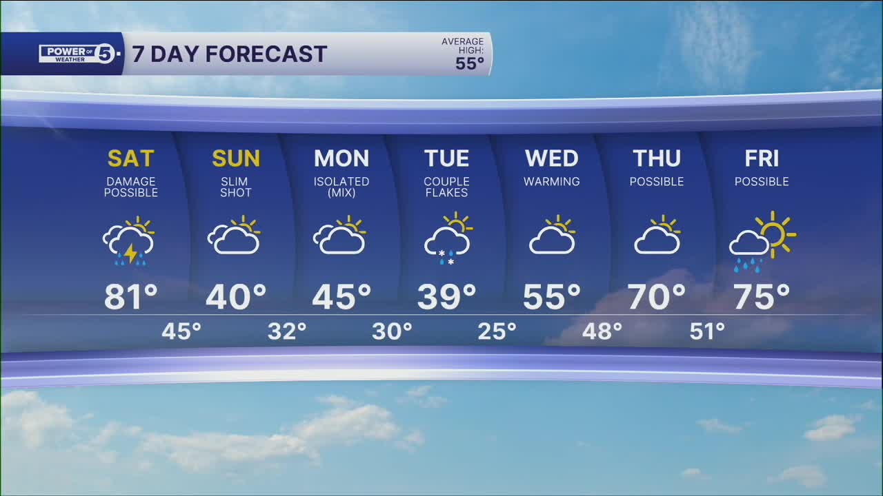CLEVELAND — Get ready for another wild weather day, Northeast Ohio. From a chilly start to a record-warm afternoon, to severe storms and flooding later in the evening, be prepared and have the News 5 app notifications turned on for severe alerts.