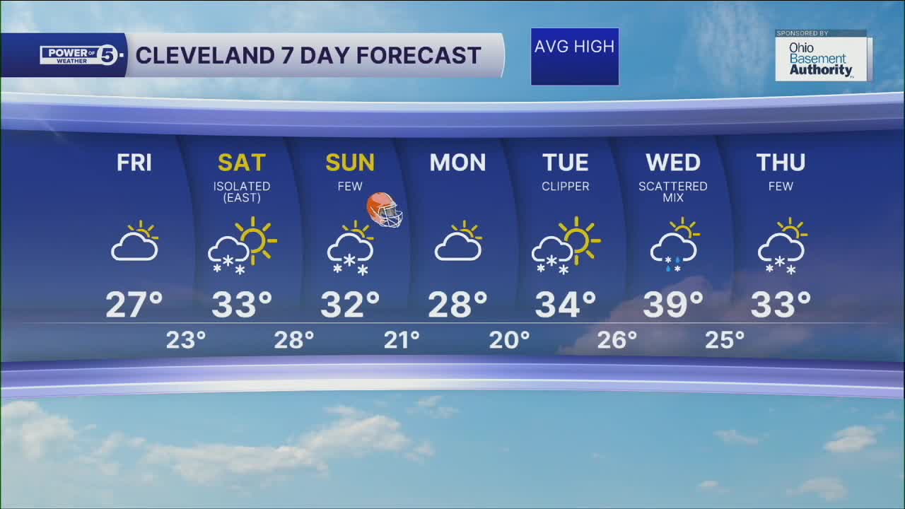 Sunday: Snow showers possible for the Browns game. | High: 32º