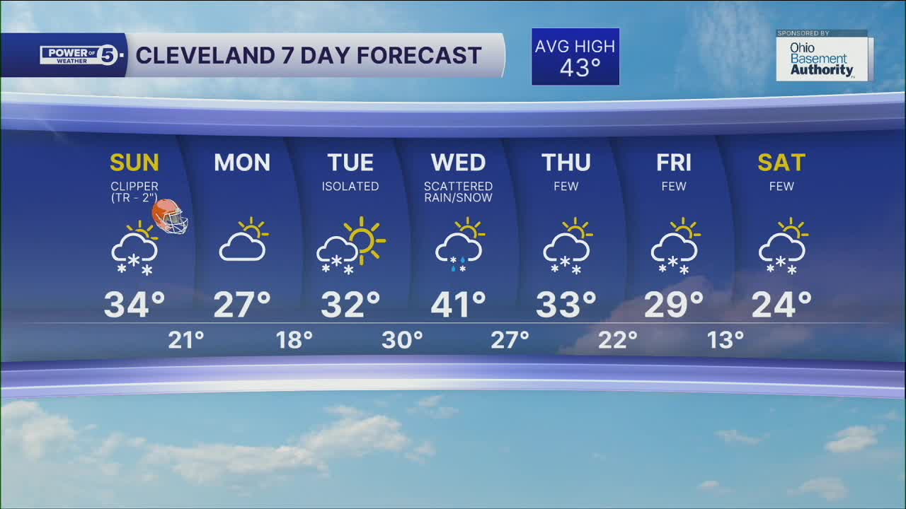 CLEVELAND — There will be another round of snow coming on Sunday. Snow shower chances will be more widespread, but remaining light. Accumulations will be minimal, as most areas will only see a trace up to an inch. A pocket of 2" will be possible, especially in the snowbelt region. We'll be in the lower 30s again, so plan on slushy accumulations. So plan on adding a few extra minutes to your travels across the region, especially during the afternoon hours.