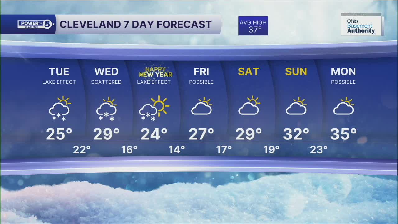 More snow will move in for New Year's Eve, as a clipper moves into Northeast Ohio, and behind it more lake effect sets up to round out 2025 and begin 2026.