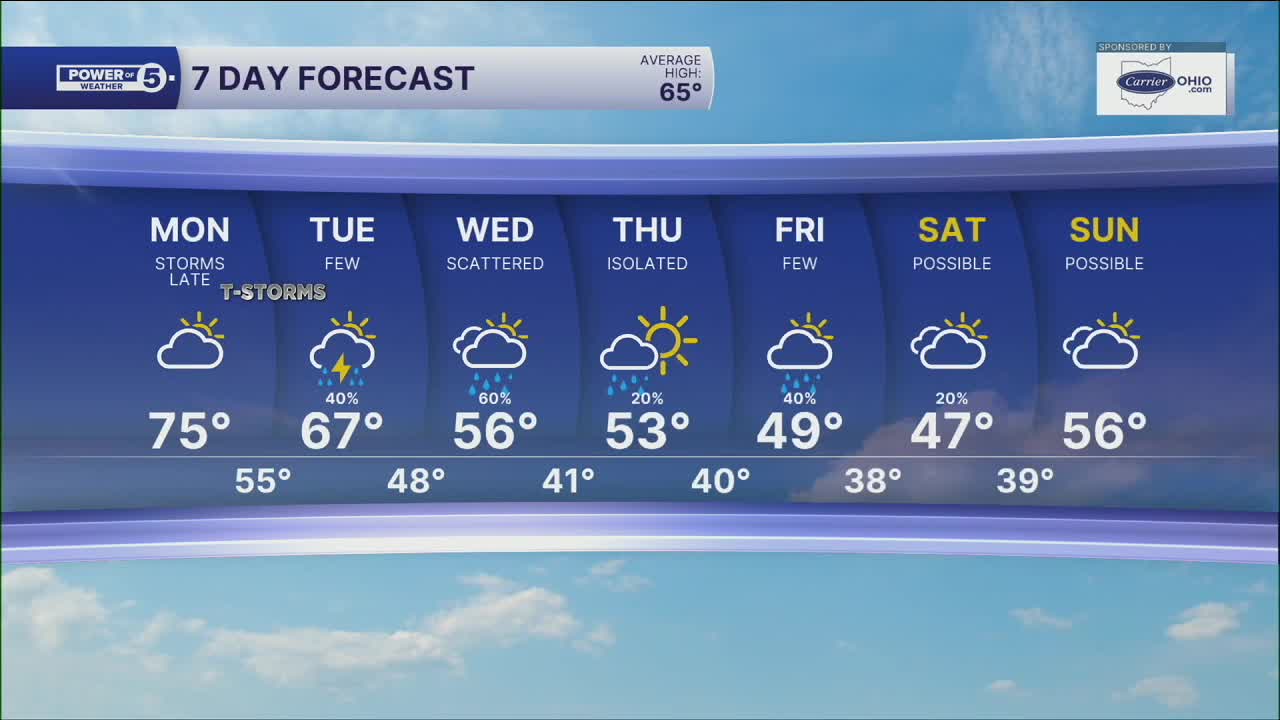 Clouds rolling in today will lead to rain this evening west of CLE. Storms roll in overnight for all of us. These will be with a decaying line of stronger storms. Plan on heavy rain and gusty winds with the strongest bursts. Most of us get rain with the heaviest west of I-77.