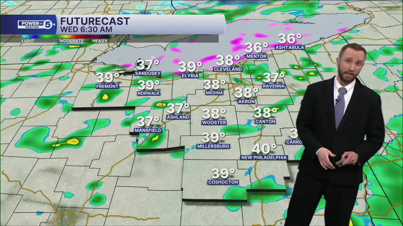 CLEVELAND — Winds are driving the forecast this week. Southwest winds on Tuesday will continue to bump temperatures up. Middle to upper 40s will be on-tap across NEO for your Tuesday. Enjoy it....as it will be fleeting. A few showers will be possible, mainly during the afternoon, in our northeastern communities.