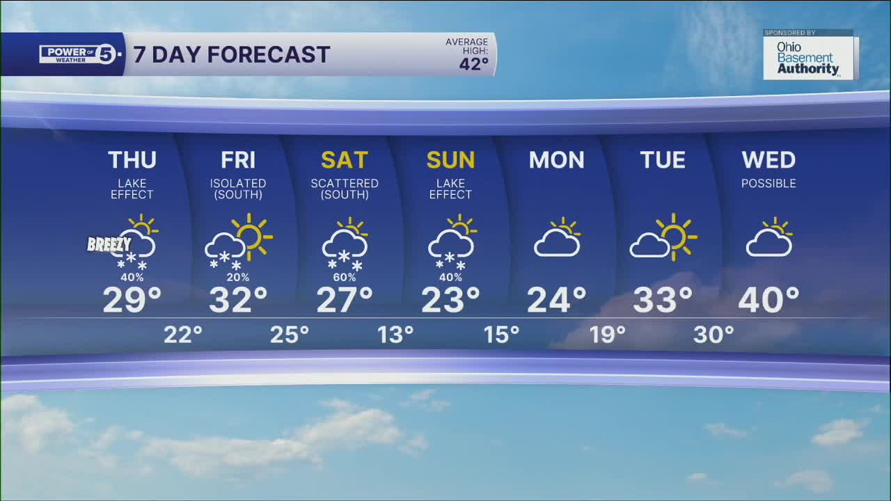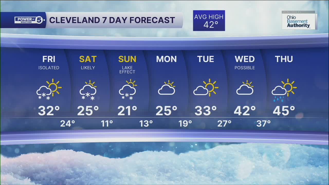 Friday: Cold with a few snow showers, especially south of Akron, in the morning. | High: 32º