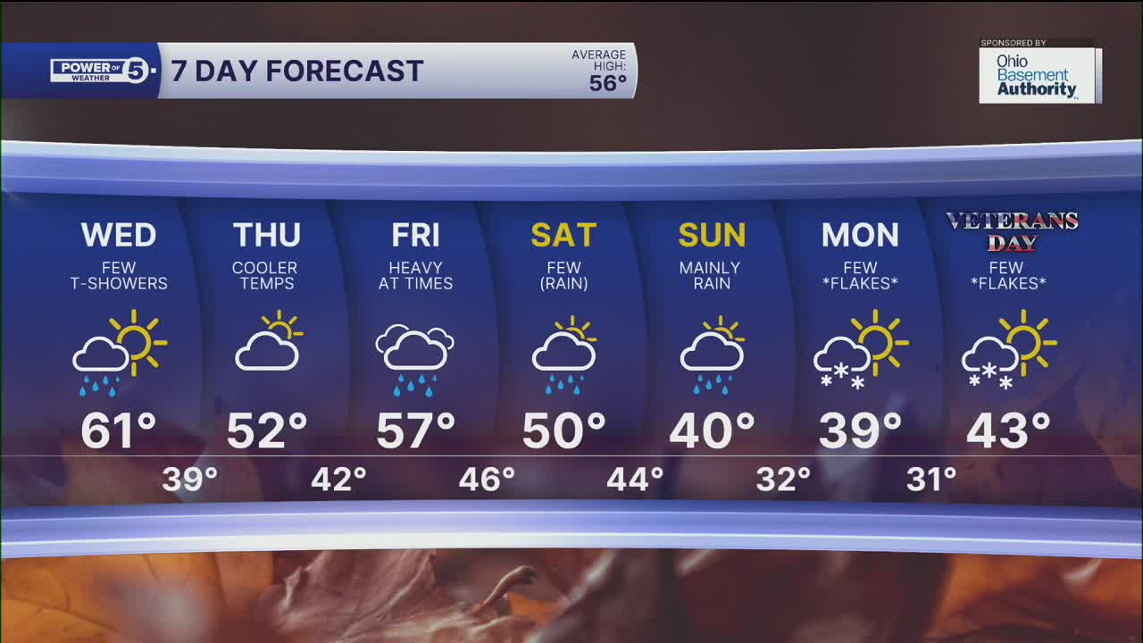 CLEVELAND — It is a cold front parade this week! One after another after another. One already moved through on Monday, and the next cold front is expected tomorrow. Plan on a few afternoon and evening t-showers on Wednesday.