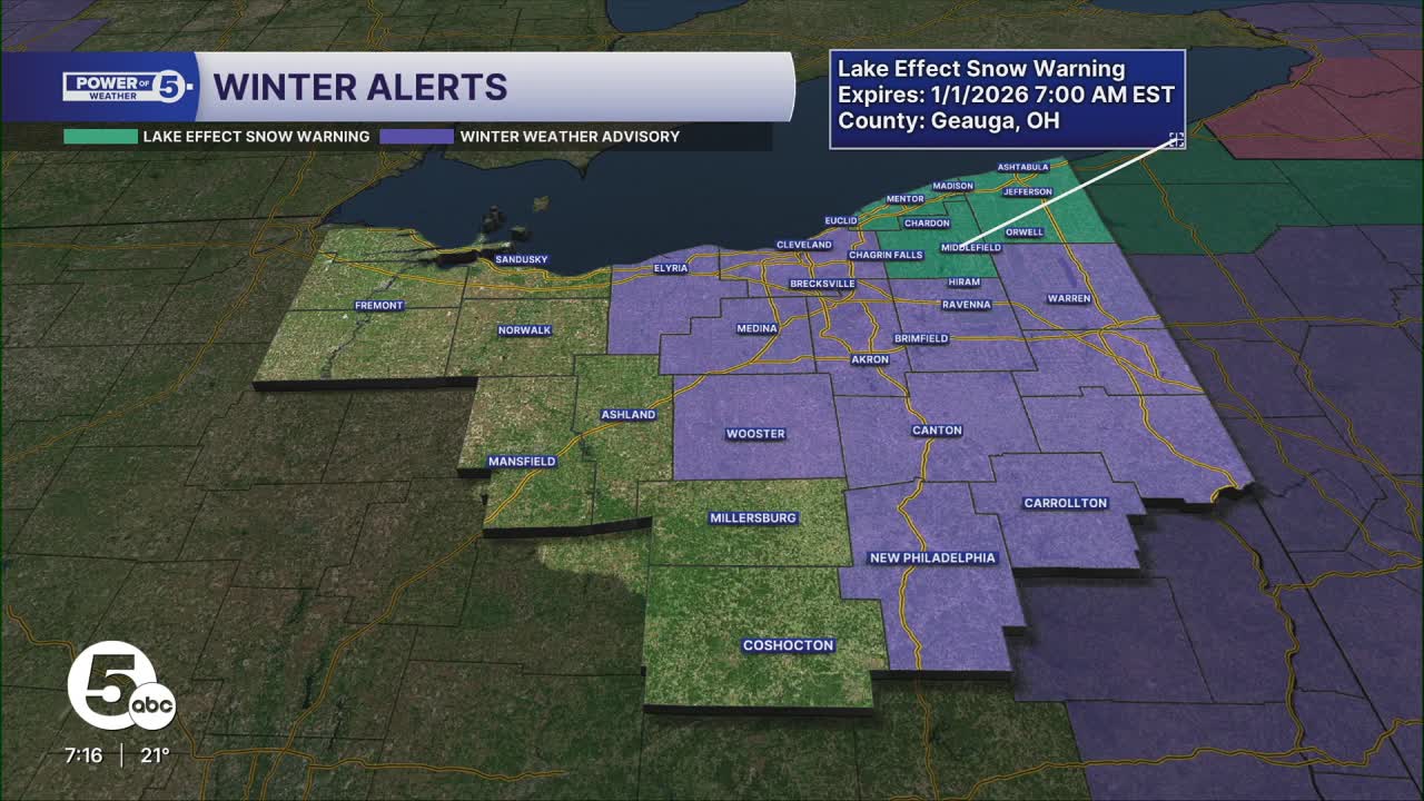A few counties are under Lake Effect Snow Warnings across NE Ohio: