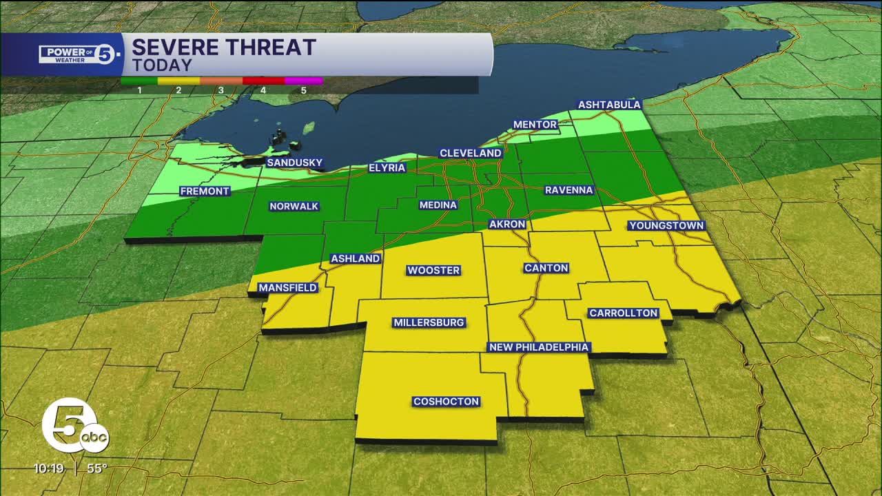 The simple explanation is: the farther south you live, the higher the chance for severe storms and severe impacts. There is just more storm energy, which starts with plenty of heat. Highs near Coshocton could soar to 85 degrees before the storms arrive.