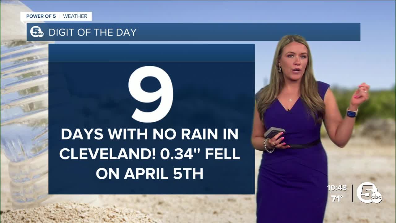 It has been very dry in Northeast Ohio and Cleveland for more than a week. In fact, it has not rained in 9 days. The last time Cleveland picked up any precipitation was on April 5. That looks to change this weekend. A weak disturbance will impact the area today and a stronger low-pressure system out west moves through tomorrow.