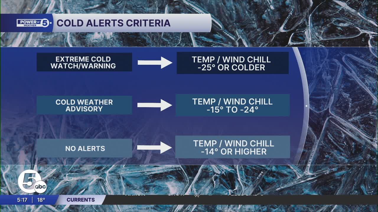 Northeast Ohio has seen even colder weather than what we're expecting into Tuesday morning. Wind chills can drop to -30 degrees, even -40 in the most extreme circumstances. When that happens, an EXTREME COLD WARNING is issued. As the name implies, that is extreme cold. Not ruling that out later in the year, but that level of cold is not expected overnight.