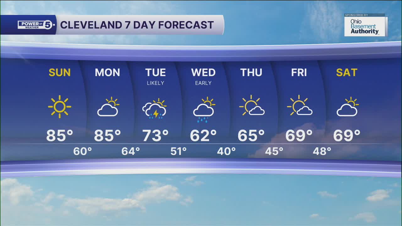 CLEVELAND — The heat will continue as we begin the new week! Highs will once again top off in the low to mid 80s on Sunday and Monday. That is a good 10 to 15 degrees above average for the first week of October! Skies will be sunny for the second half of the weekend, but we can expect more clouds to appear as we begin the new work week.