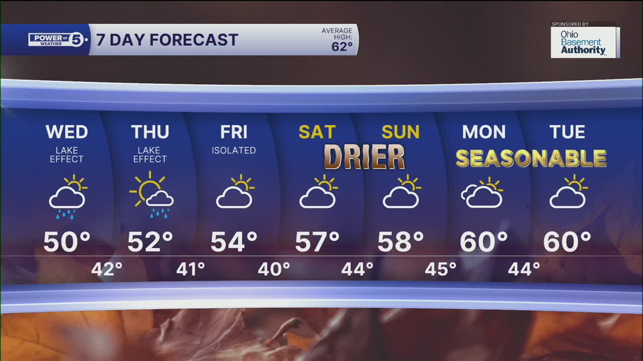 Wednesday: Lake Effect Showers. Cooler again. | High: 50º