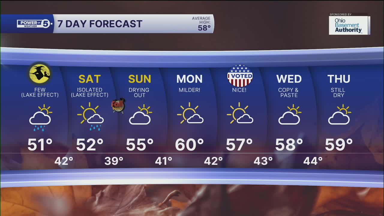 There will likely even be some sun! We cannot rule out a couple of isolated showers for trick-or-treating, but the better potential for lake-effect showers looks to hold off until after 9 or 10 pm on Friday. Keep in mind, it will be chilly and blustery for Halloween night with temperatures in the 40s but wind chills in the 30s.
