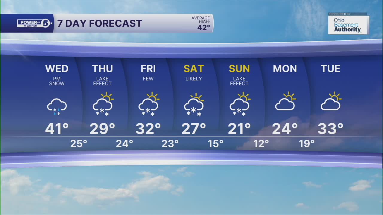 Friday: Cold with a few snow showers, especially south of Akron, in the morning. | High: 29º