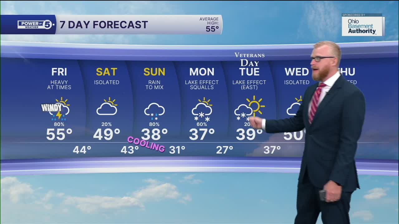 CLEVELAND — It is the big talk across Northeast Ohio...are you ready for the FIRST SNOW of the season?! We are still a couple of days out, but the entire Power of 5 weather team is keeping a super close watch on the forecast for this weekend and early next week. Let's pump the brakes, though... before that happens, we need to talk about a wet and windy Friday!