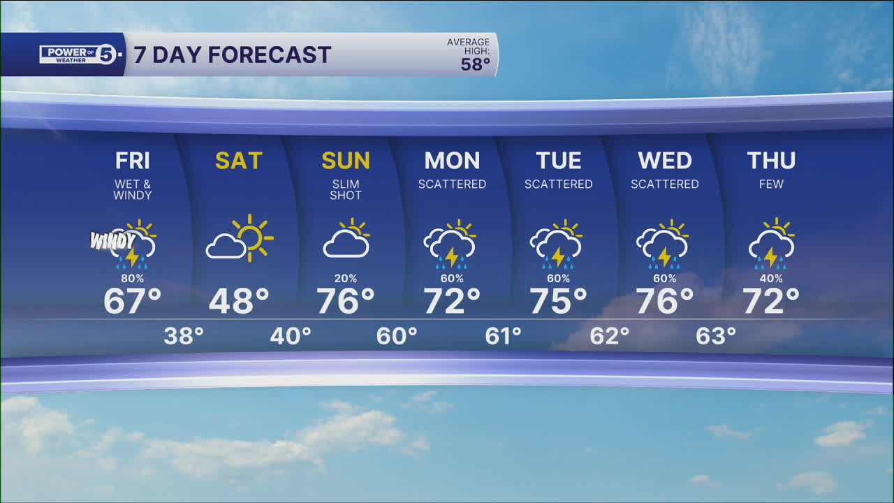 CLEVELAND — Tough day to prep for. Warm & windy with gusts to 40mph this morning, followed by rain. Heavy rain at times, too.