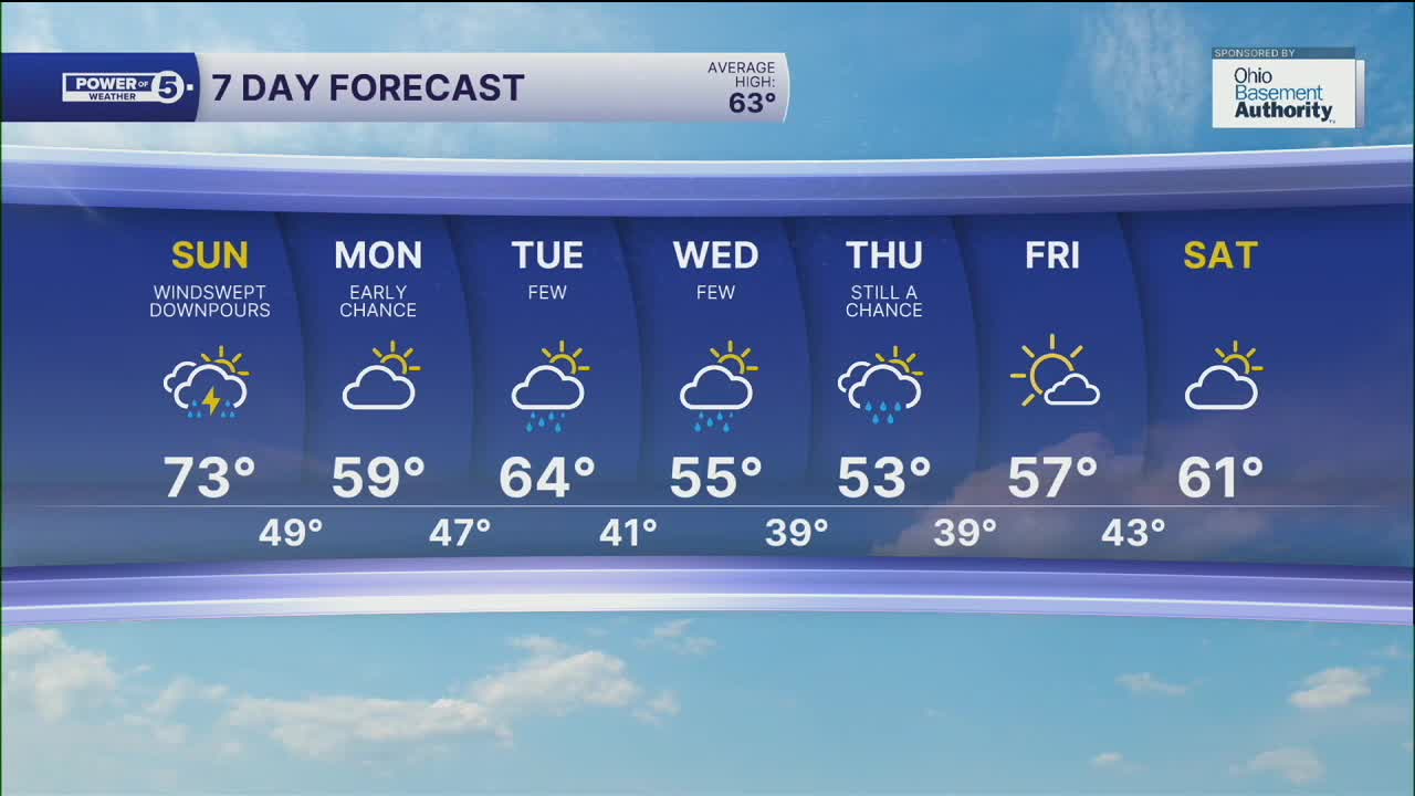 CLEVELAND — Significant rain and potentially strong storms will move through Northeast Ohio through early Sunday afternoon, with more windswept rain continuing into Sunday night.