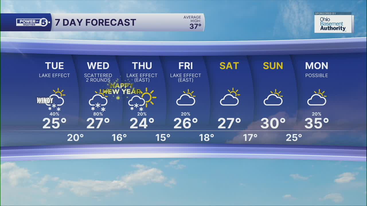 New Year's Day: Cold to start 2026. Lake effect snow possible. | High: 24º
