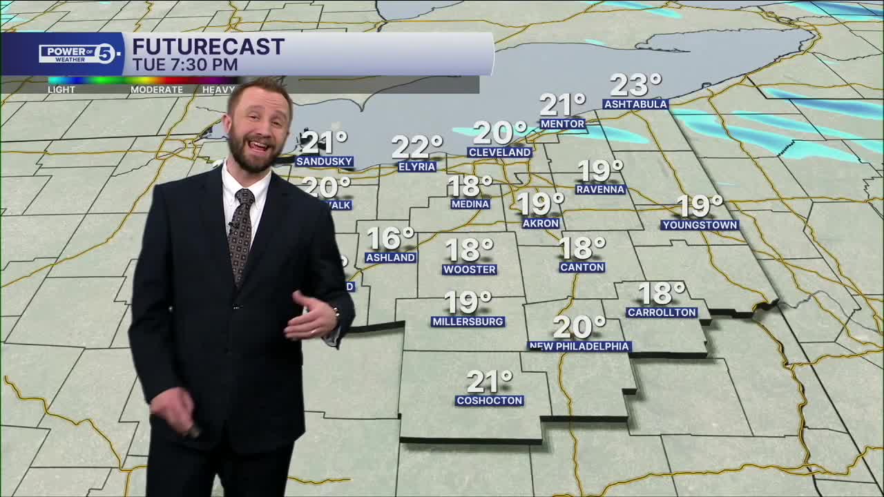 Widespread snow moves in during the second half of your Tuesday evening and will continue into the wee hours of Wednesday. Lake enhancement will be possible, especially in parts of the snowbelt of Lake and Ashtabula counties.